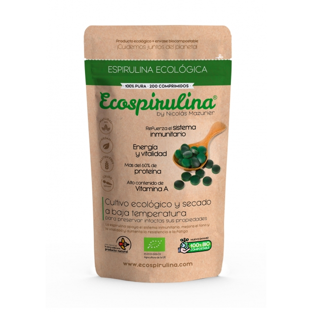 Los comprimidos Ecospirulina se elaboran sin aditivos ni apelmazantes químicos. El proceso de secado a baja temperatura (<39ºC) conserva vitaminas, enzimas y antioxidantes, a diferencia de la espirulina industrial que se seca a alta temperatura (>180ºC) y pierde nutrientes.
